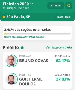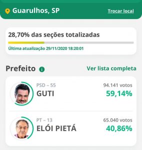 CONFIRA A PARCIAL DO 2o TURNO EM MAUÁ, DIADEMA, GUARULHOS, MOGI DAS CRUZES E SP. CLIQUE E OUÇA O PODCAST COM BOLETIM ESPECIAL ELEIÇÕES 2020