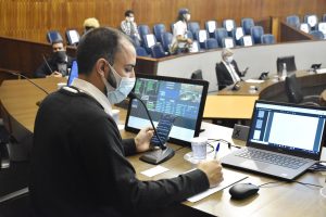 O presidente da casa de leis, o vereador Zé Carlos Nova Era (PL), fala com a jornalista Gabi Tricanico.