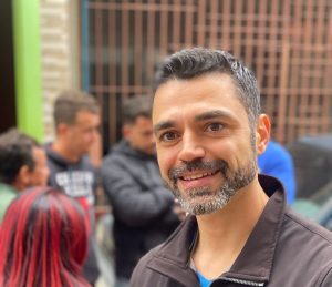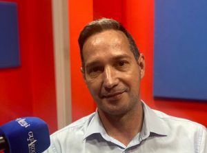 O secretário de habitação Rafael Dalla Rosa fala com a jornalista Gabi Tricanico