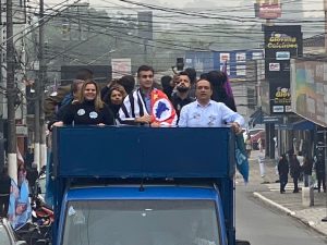 Ao lado dos candidatos a deputado federal Marcelo lima (SD), e deputada estadual Carla Morando (PSDB), ele desce a rua Marechal Deodoro em cima do