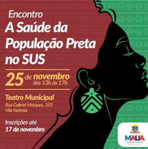 O Município promove o “Encontro a saúde da população preta no SUS” no dia 25 de novembro, no Teatro Municipal. Interessados podem se inscrever até