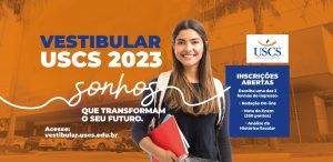 Interessados podem ingressar de 3 maneiras diferentes na Universidade em mais de 50 cursos onlines e presenciais Serviço: Vestibular USCS 2023 Inscrições: https://vestibular.uscs.edu.br/