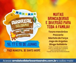 O evento conta com bingo, feira gastronômica e entrada solidária de 1Kg de alimento. SERVIÇO: ARRAIAL SOLIDÁRIO NO PAÇO MUNICIPAL DE SANTO ANDRÉDATA: 16, 17
