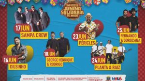 O evento acontece no Paço Municipal e sexta tem show do cantor Dilsinho. 36ª FESTA JUNINA SOLIDÁRIA DE MAUÁDATA: 16, 17, 18, 23, 24 E