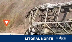 Um ônibus ficou totalmente destruído após pegar fogo na Rodovia dos Tamoios, em Paraibuna, nesta terça-feira (18). Não houve vítimas, segundo o Corpo de Bombeiros.