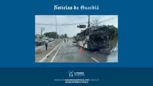 Um ônibus de turismo pegou fogo no fim da manhã desta terça-feira (26), no trecho final da rodovia Mogi-Dutra, na pista sentido Mogi das Cruzes.