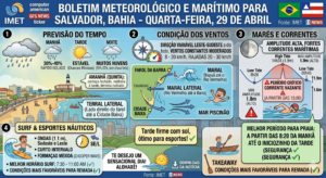 Nesta quarta-feira, 29 de abril, a capital baiana apresenta clima variável, com melhora significativa e sol no período da tarde. O mar oferece excelentes condições
