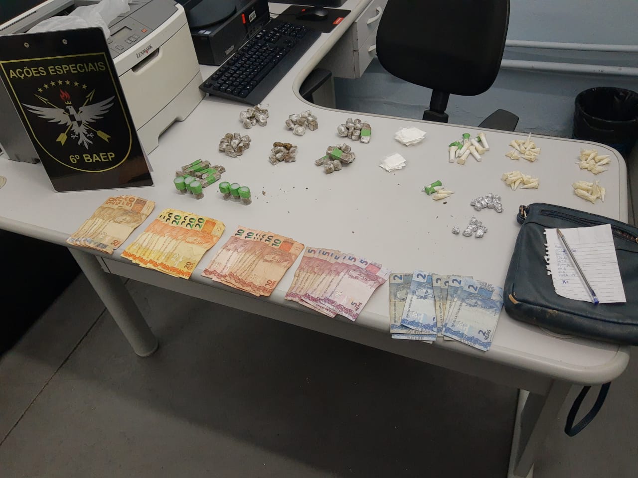 Foram encontrados com o suspeito drogas e dinheiro em espécie.