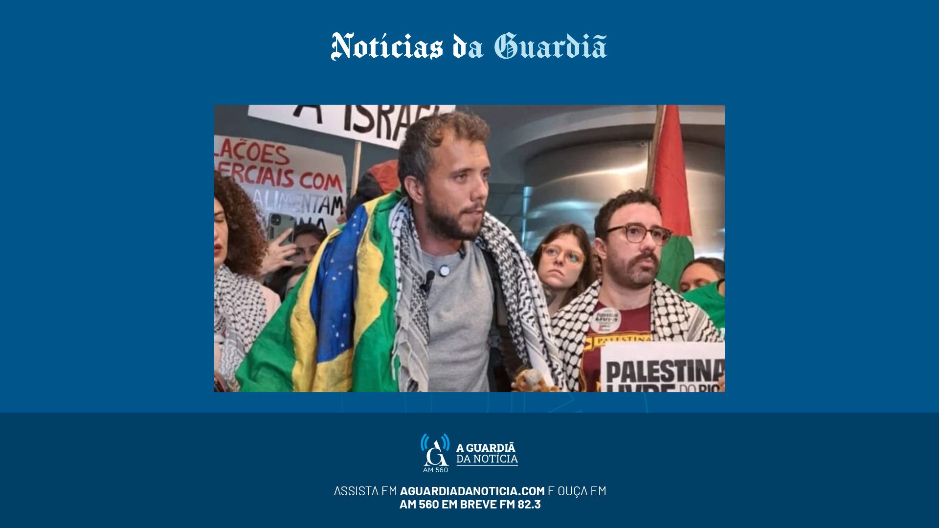 O brasileiro foi preso por autoridades israelenses a bordo da embarcação “Madleen”, da Coalizão Flotilha da Liberdade, que pretendia levar ajuda humanitária para a Faixa de Gaza.