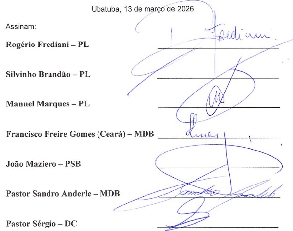 Nos bastidores da Câmara, o ponto político central é a nova composição de forças. Um documento assinado por parlamentares passou a circular com a defesa da inclusão da matéria em pauta. Entre os nomes que aparecem no requerimento estão Rogério Frediani (PL), Silvinho Brandão (PL), Manuel Marques (PL), Francisco Freire Gomes, o Ceará (MDB), João Maziero (PSB), Pastor Sandro Anderle (MDB) e Pastor Sérgio Alves (DC). Com essa maioria formada, aumentou a pressão regimental para que o presidente da Câmara, Gady Gonzalez, colocasse o projeto em votação.