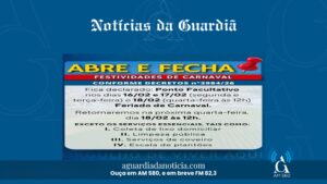 Os dias 16 e 17 de fevereiro, segunda e terça-feira de Carnaval, serão de ponto facultativo. Já na quarta-feira, 18, o atendimento ao público será