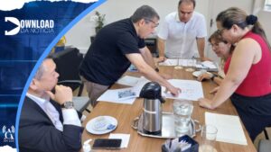 O vice-prefeito de Mogi das Cruzes, Téo Cusatis, o secretário municipal de Mobilidade e Trânsito, Felício Kamiyama, e seu adjunto, Fábio Vega, receberam no Gabinete