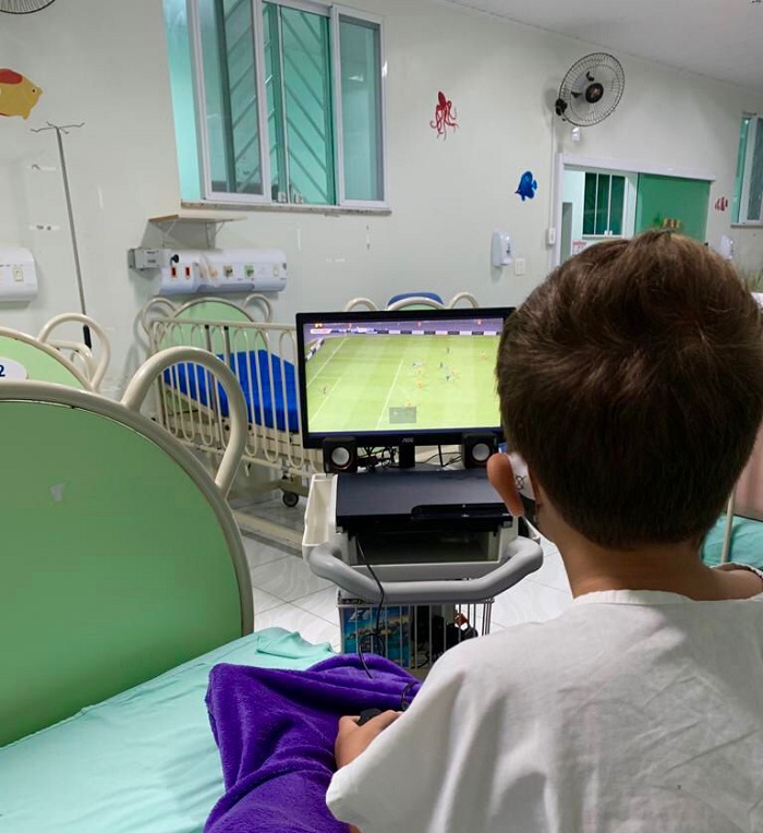 Notícia boa. Para amenizar o sofrimento no período de internação das crianças, a Casa de Saúde Stella Maris, em Caraguatatuba, os pequenos pacientes podem jogar videogame enquanto permanecem no quarto hospital. Ouça a reportagem