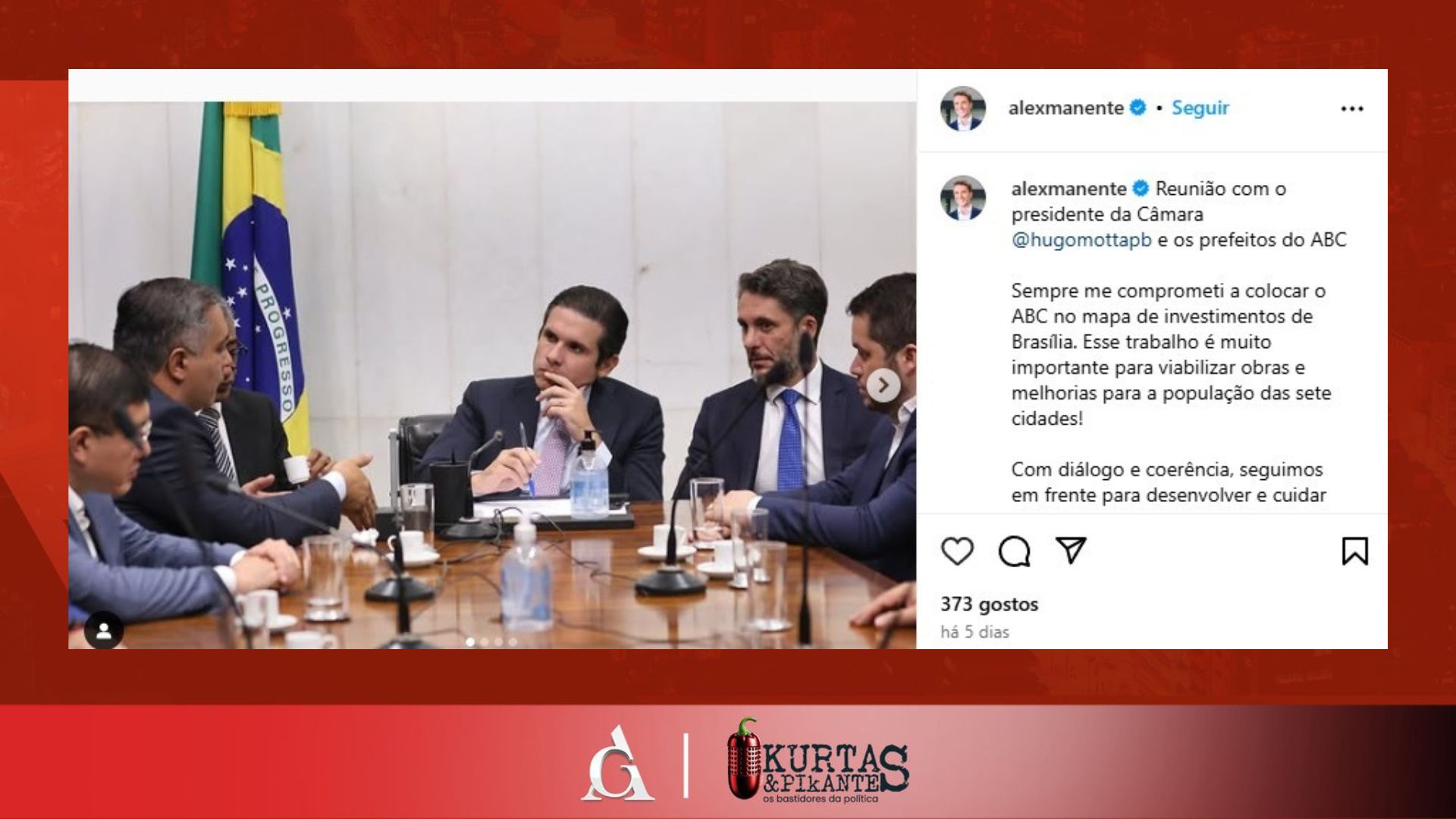 O deputado federal Alex Manente tentou associar seu nome à agenda do prefeito de São Bernardo e presidente do Consórcio Intermunicipal, Marcelo Lima, que organizou uma reunião com o presidente da Câmara Federal, Hugo Motta, em Brasília, além dos demais prefeitos.