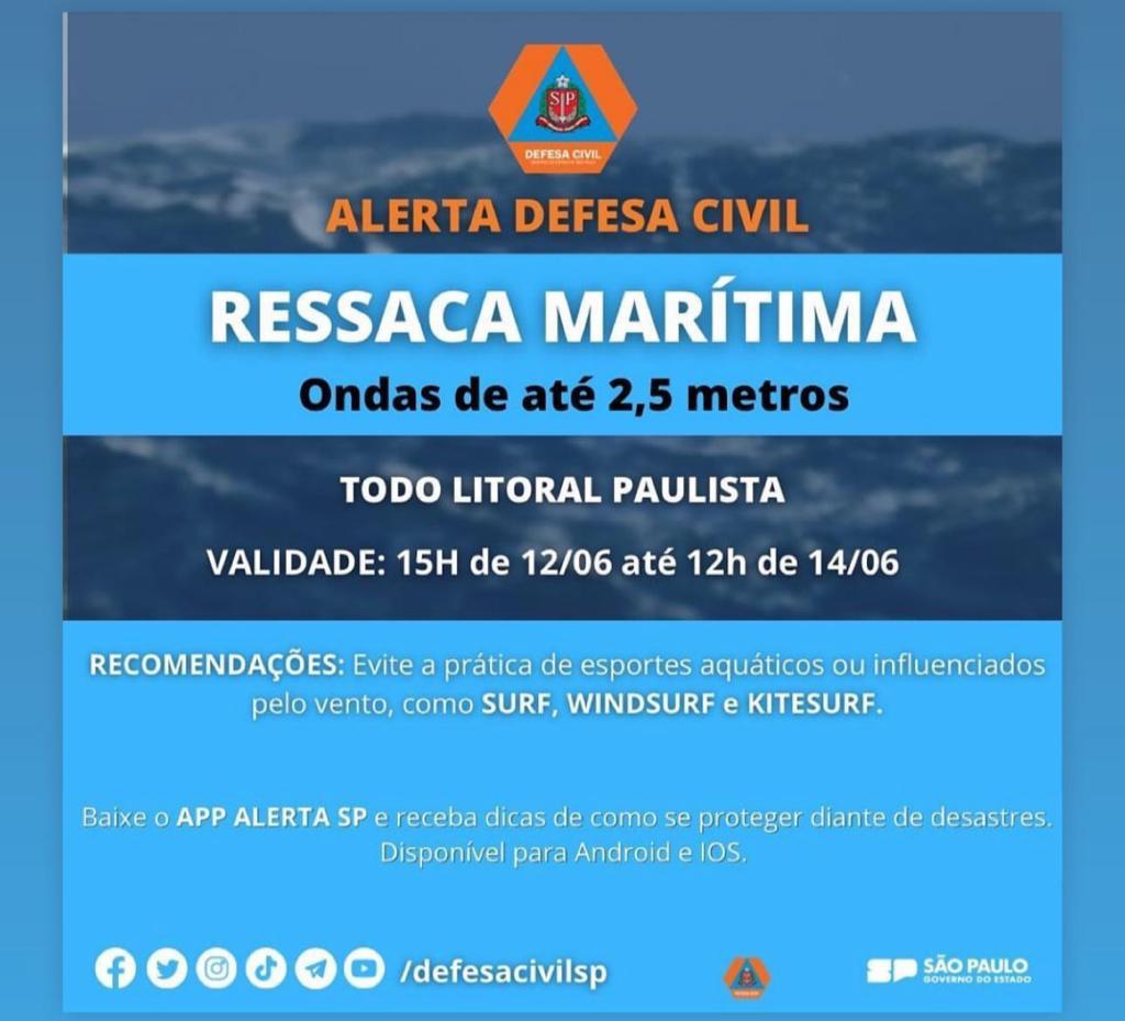 LITORAL DE SP: DEFESA CIVIL ALERTA PARA RESSACA NO MAR E ONDAS DE ATÉ 2,5 METROS NESTA 2ª