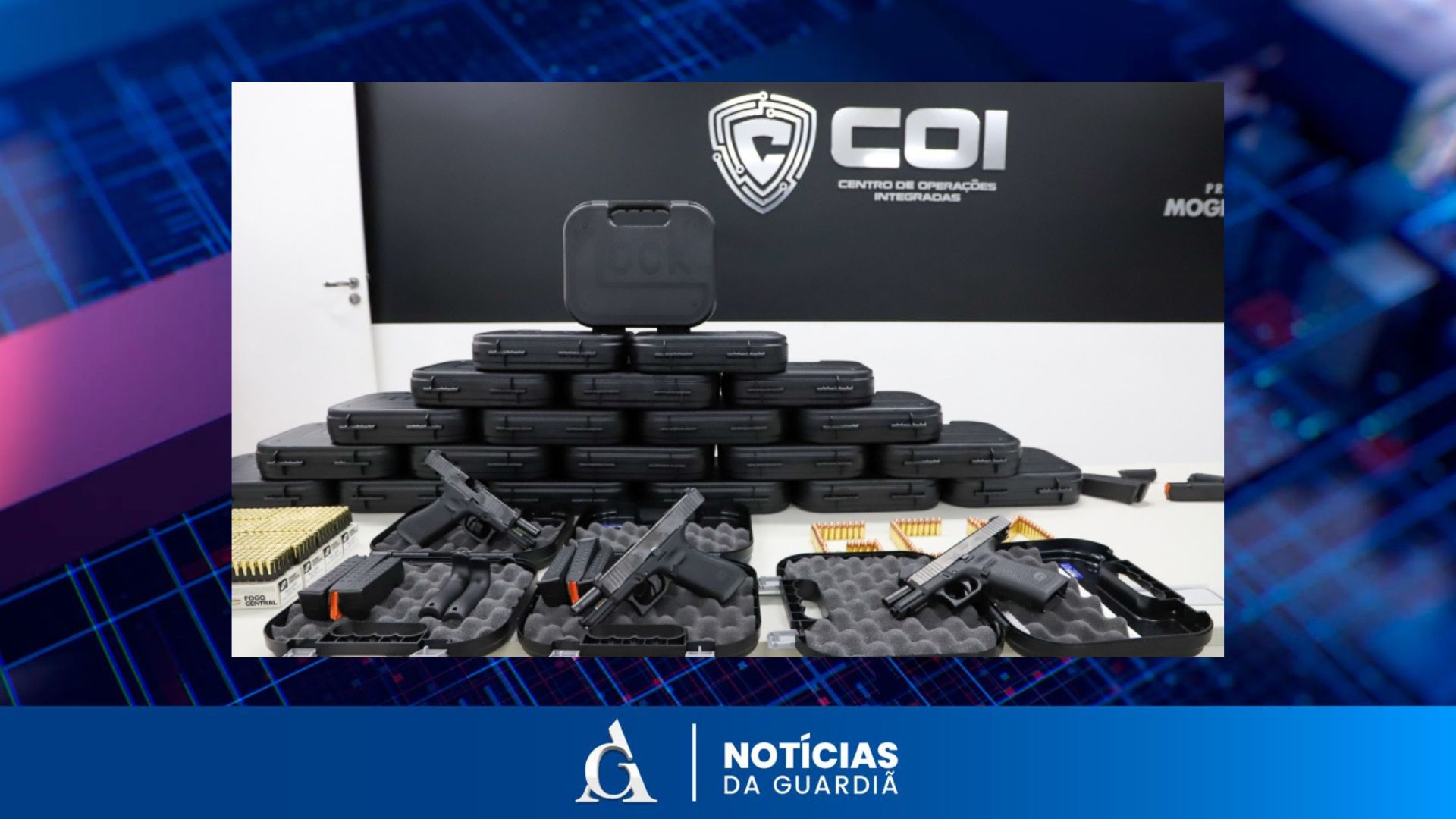 A Guarda Civil Municipal (GCM) de Mogi das Cruzes recebeu nesta quinta-feira, 28 de novembro, um importante reforço em seu arsenal: 257 pistolas Glock e 15 mil munições. A entrega simbólica aconteceu no Centro de Operações Integradas (COI), marcando um avanço significativo na estrutura da corporação.
