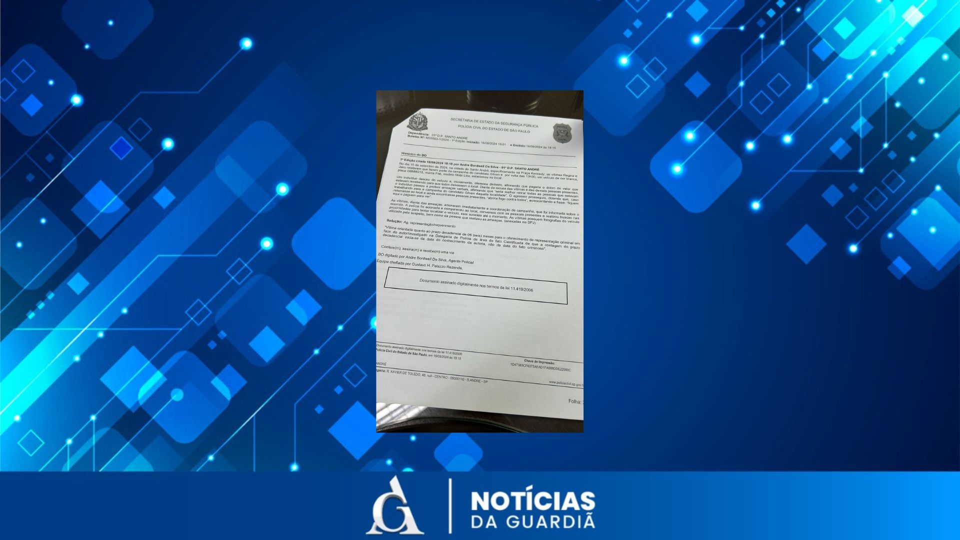 Regina Celia França e Jairo Lopes de Lima relataram ao agente Andre Bordwell da Silva, do 1° DP, que se encontravam na Praça Kennedy, fazendo campanha política para Gilvan, portando bandeiras, quando, por volta das 13h30, um indivíduo se aproximou da dupla. Segundo disseram à polícia, o recém-chegado ofereceu dinheiro para que abandonassem o posto. Diante da recusa dois dois, ameaçou-os de morte.