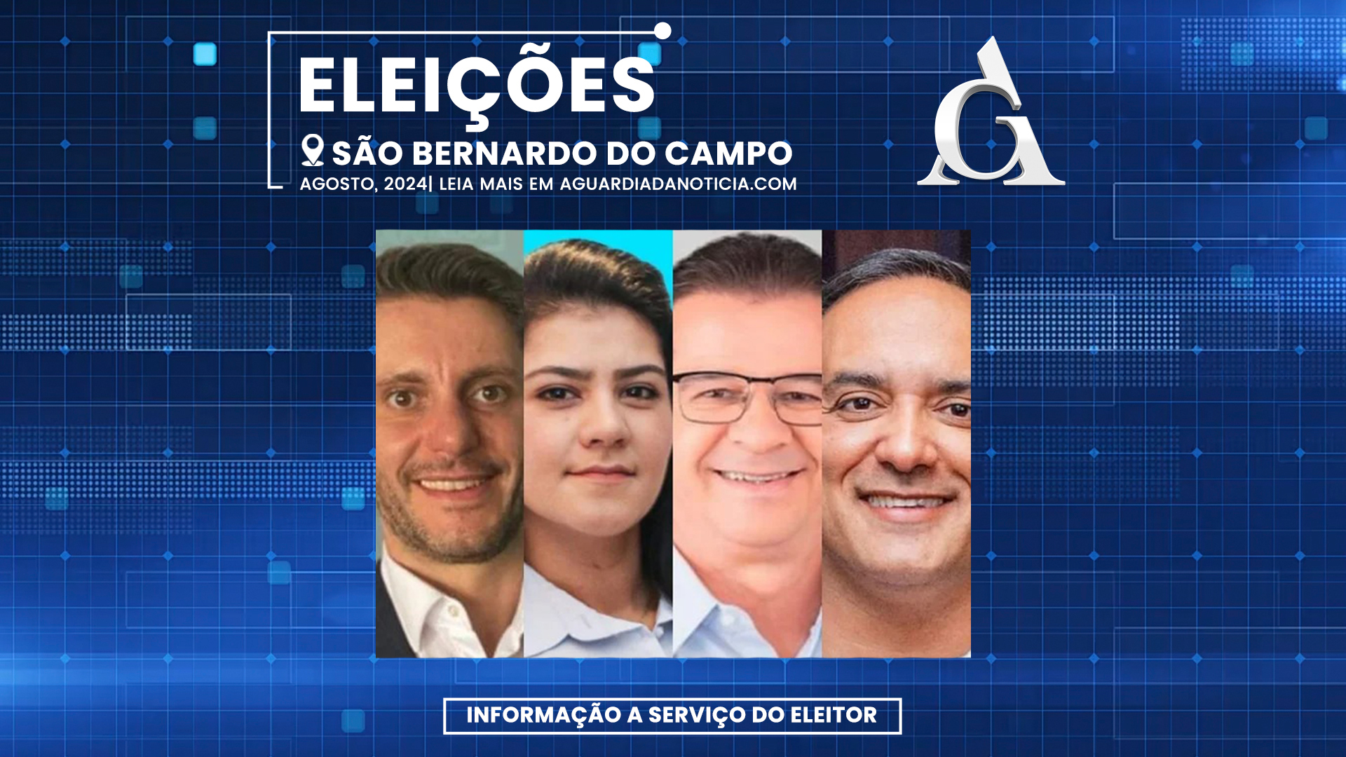 Nesta sexta-feira (20), o portal G1 realizará um debate entre os quatro candidatos à Prefeitura de São Bernardo do Campo, a partir das 13h30.