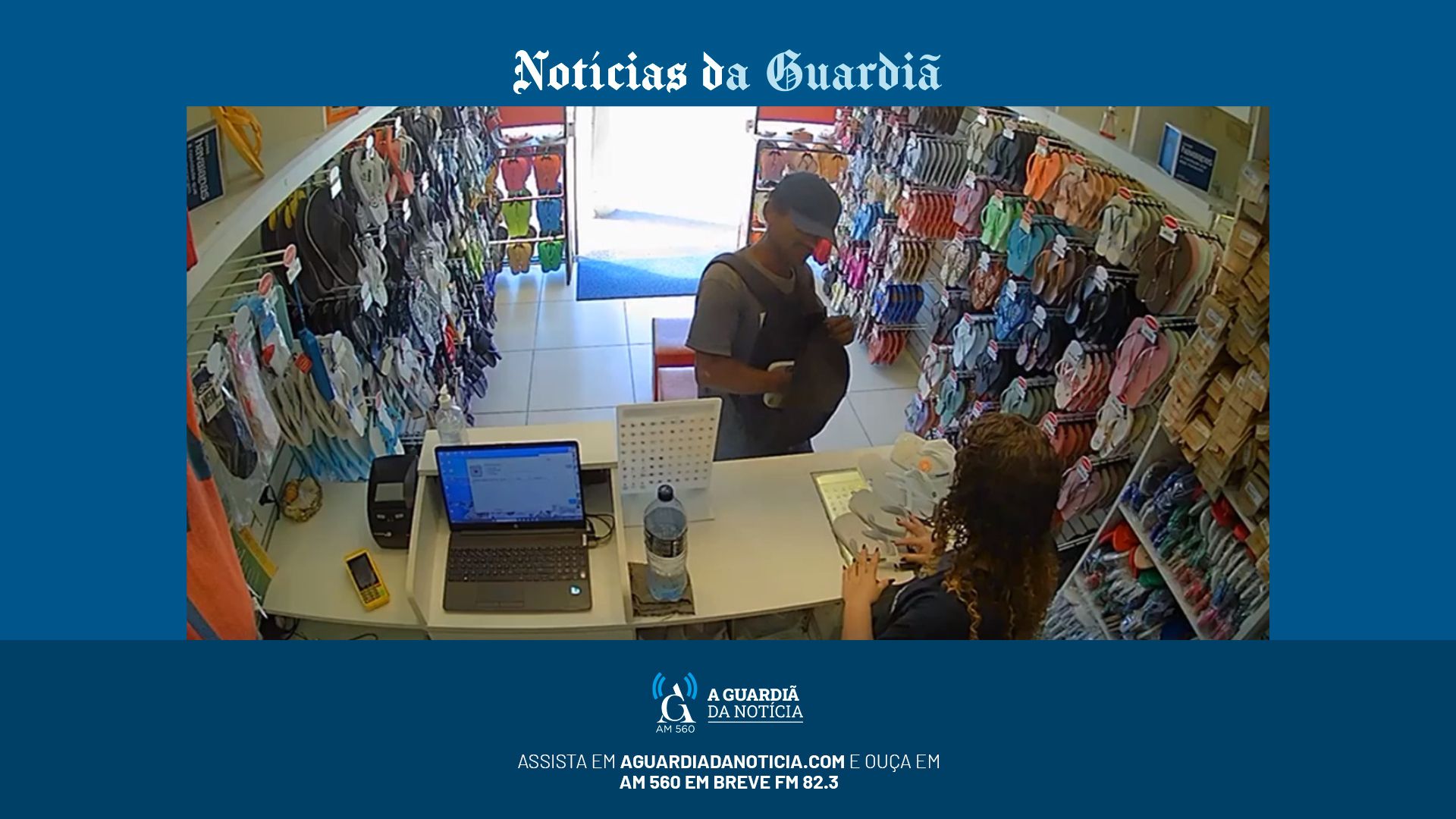 Câmeras de segurança flagraram, neste sábado (1º), dois furtos a lojas de chinelos em Ubatuba. Um homem vestido de azul foi filmado às 10h em um estabelecimento nas proximidades e, novamente, por volta das 15h15, em outra loja no Centro. Nas duas ocasiões, o suspeito repetiu o mesmo modo de agir.