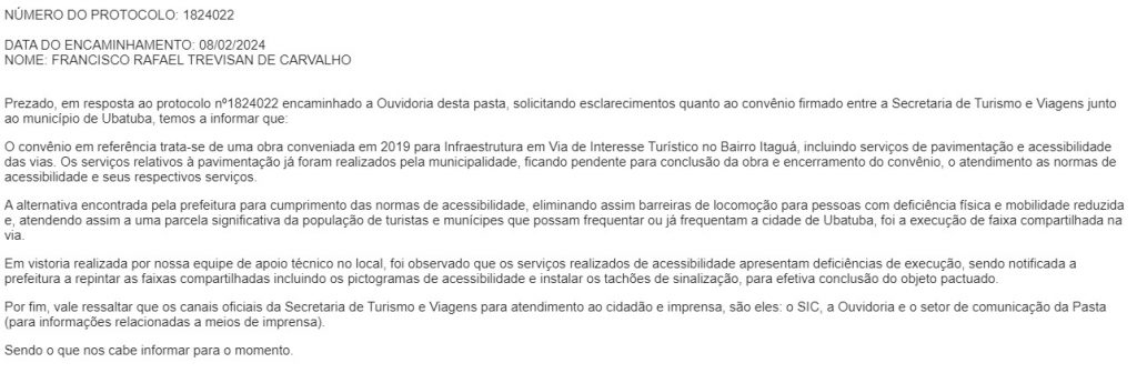 UBATUBA: SECRETARIA ESTADUAL DE TURISMO SE MANIFESTA SOBRE A FAIXA VERDE PINTADA NO ITAGUÁ